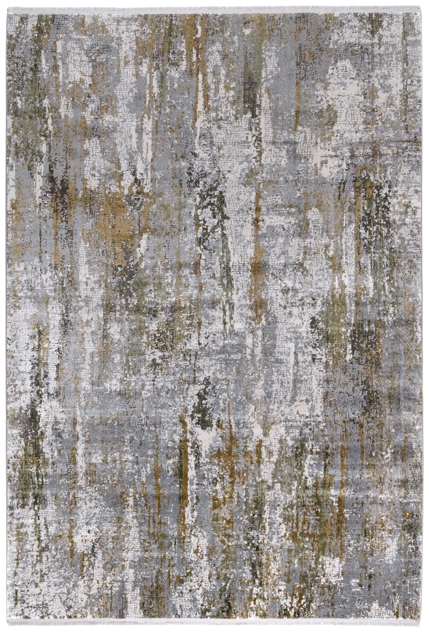 Infused with moody grays, muted golds, and soft ivory, this rug showcases a contemporary abstract pattern that feels both artistic and timeless. The distressed design gives it a rich, lived-in look while maintaining a modern edge—perfect for adding visual texture to minimalist and luxe interiors alike.