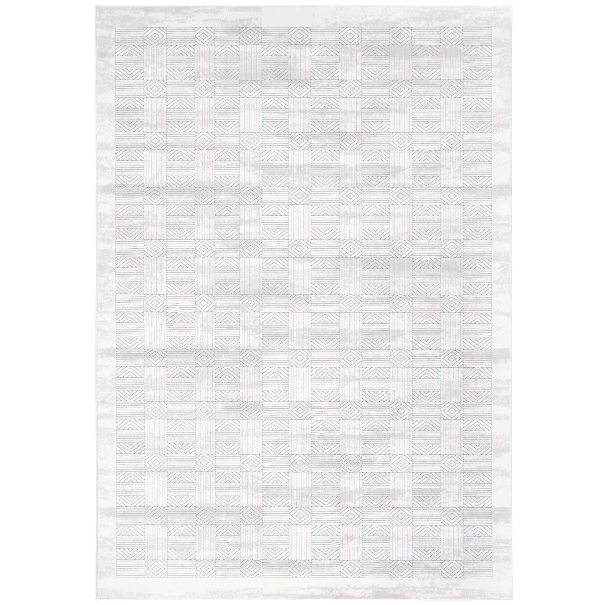 Boutique-02 cream and navy rug with arched geometric pattern and soft texture