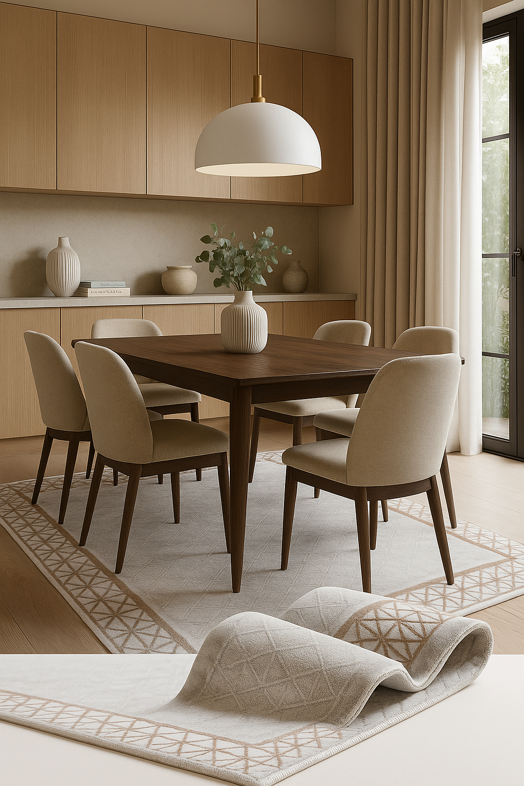 Use a rug pad underneath to prevent slipping, protect floors, and extend rug life.