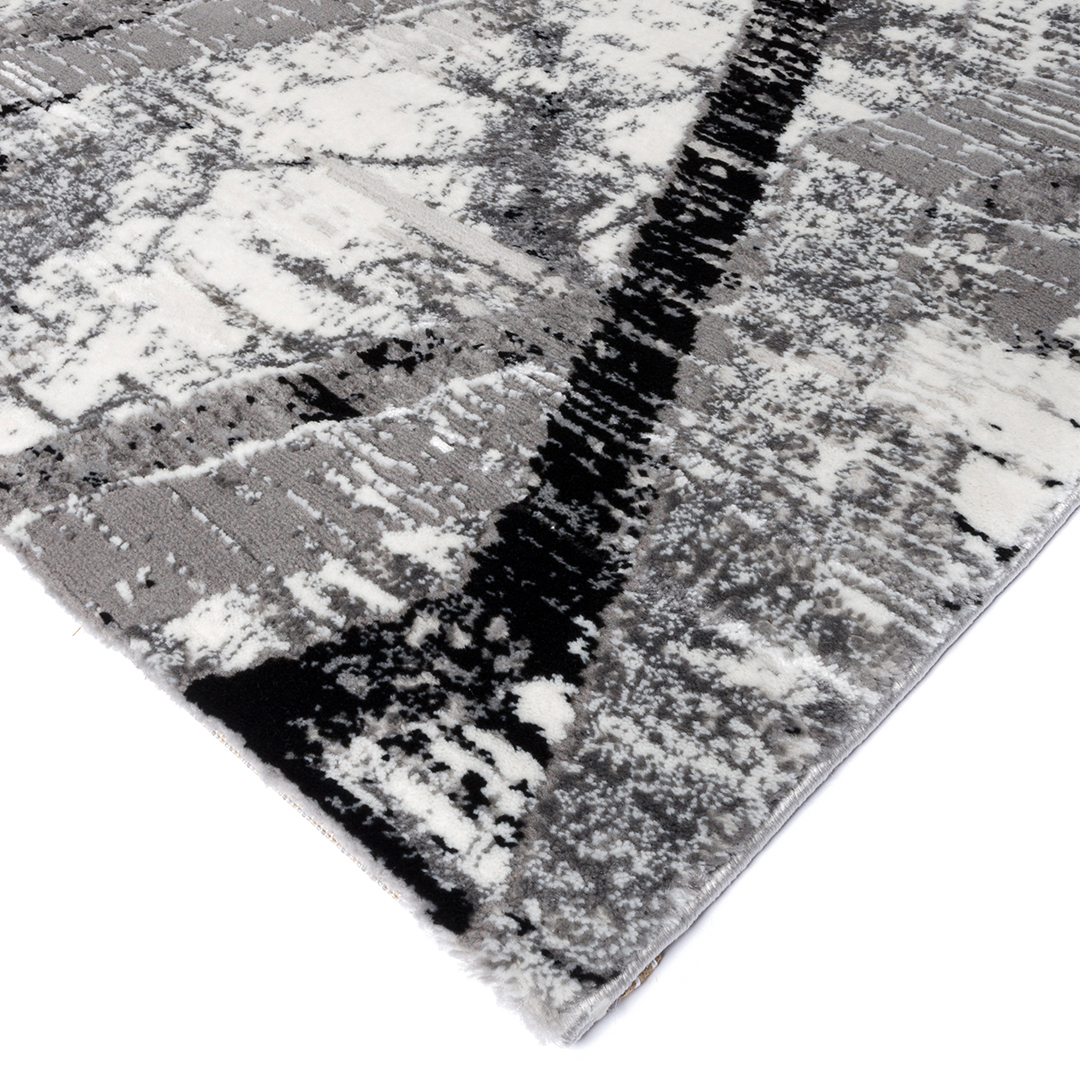 A striking abstract design that fuses luxury with everyday durability. Featuring a stunning palette of silvers, grays, and neutral tones, this rug brings texture and depth to any modern space, whether it's your living room, bedroom, or office.